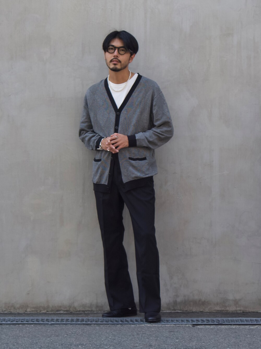 明賀健太(アルフレッド・バニスター 南堀江店)のスラックス「WEB限定【Wrangler×MYSELF ABAHOUSE】別注 イージーパンツ仕様 WRANCHER DRESS JEAN ラングラー ランチャー ドレスジーンズ」を使ったコーディネート