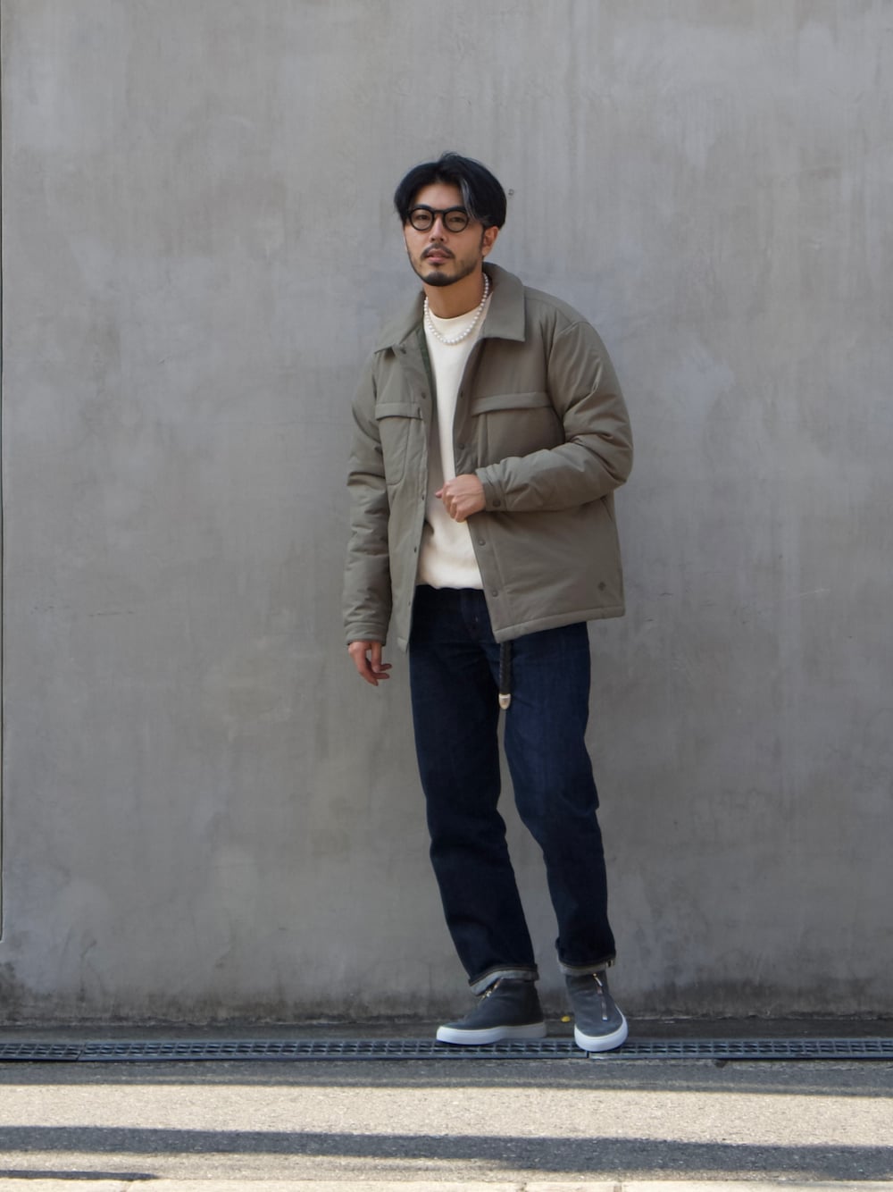 明賀健太(アルフレッド・バニスター 南堀江店)のブルゾン「【別注 DESCENTE / デサント】ライトパフ シャツブルゾン」を使ったコーディネート