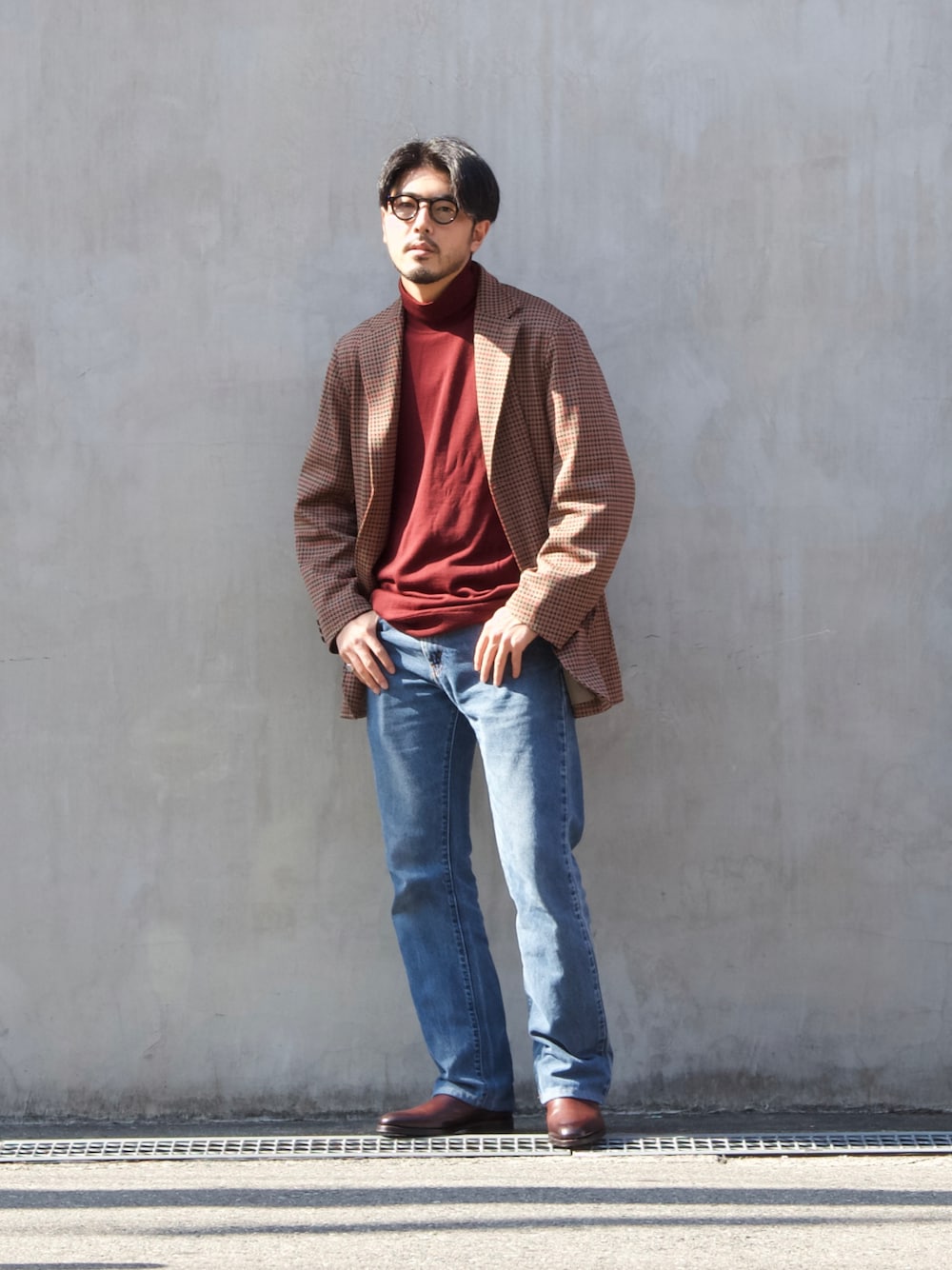 フレアデニムとチェックジャケットでレトロな雰囲気📽