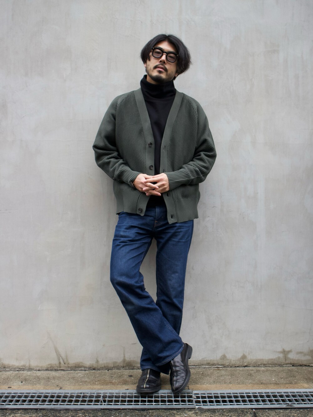 明賀健太(アルフレッド・バニスター 南堀江店)のニット/セーター「FORTUNAHOMME ECOTEC CombKnit CD」を使ったコーディネート