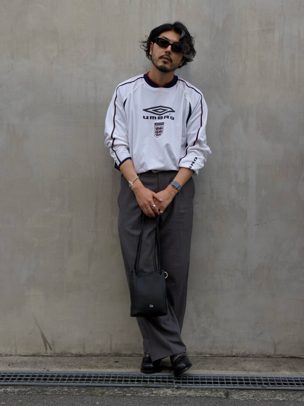 明賀健太(アルフレッド・バニスター 南堀江店)のトートバッグ「【WAKU別注】2WAY スモール レザー トートバッグ」を使ったコーディネート