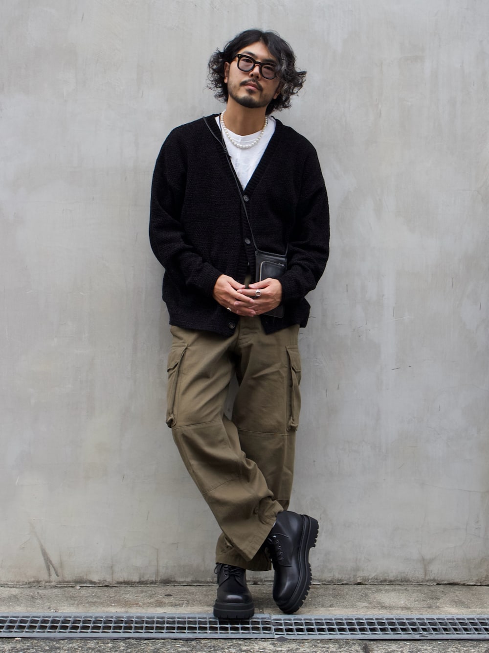 明賀健太(アルフレッド・バニスター 南堀江店)のトートバッグ「スモールレザー コンパクト ポシェット」を使ったコーディネート