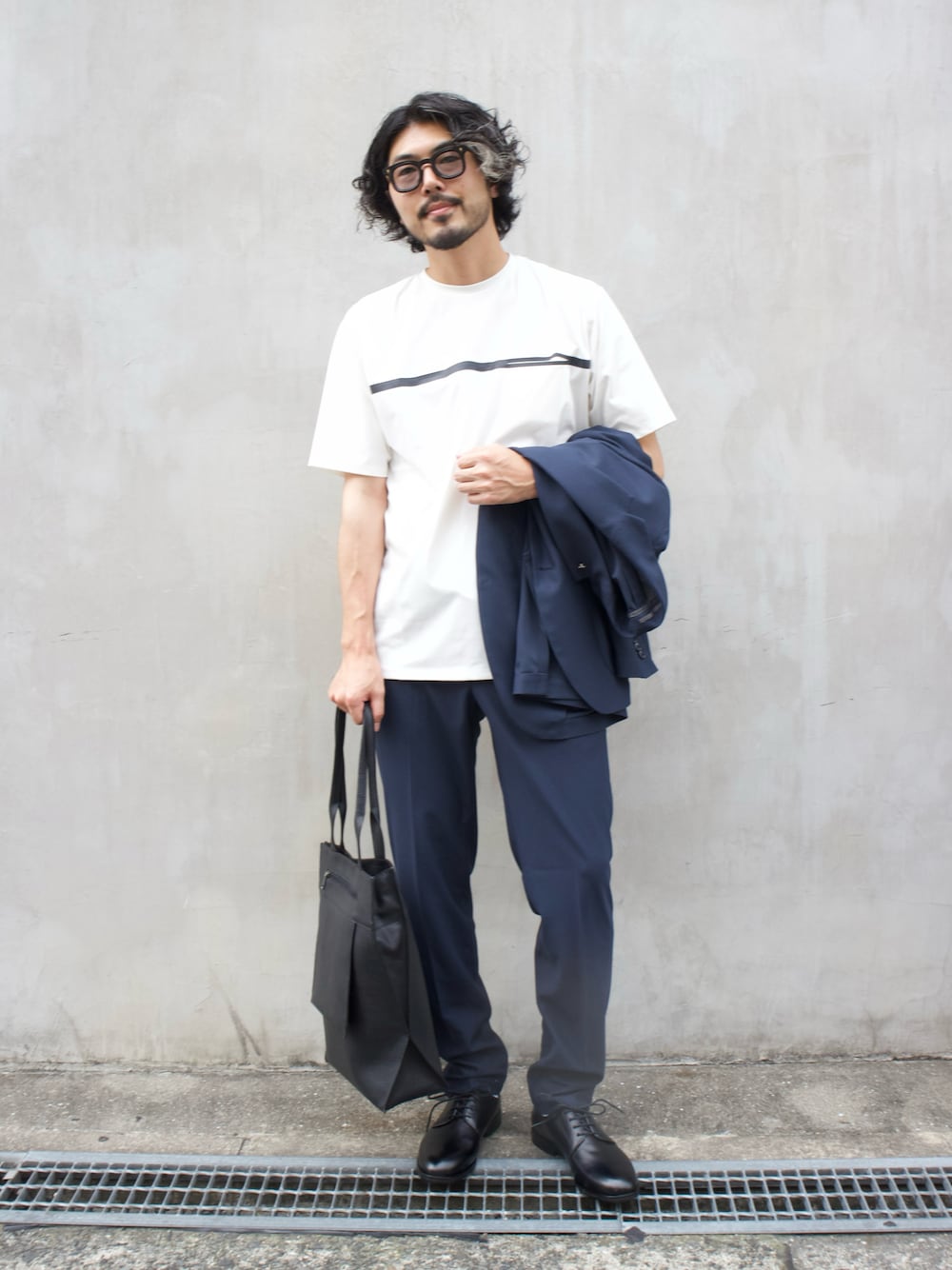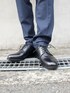 明賀健太(アルフレッド・バニスター 南堀江店)のドレスシューズ「【WEB別注】スタンダード プレーントゥ シューズ」を使ったコーディネート