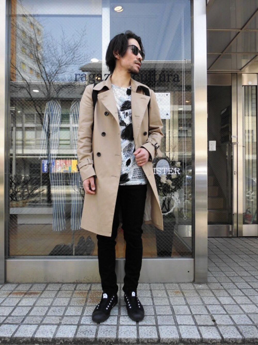 coat:ABAHOUSE size:2 tee:cheap monday size:xs pants:cheap monday size:30inc shoes:chep monday size:42 eye wear:cheao monday size:free bag:cheao monday size:free 身長:171 体重:58 トレンチコードを軸にカジュアルダウン