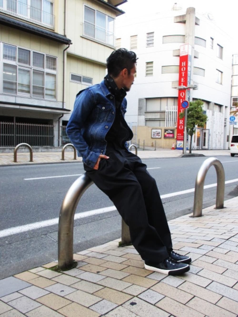 注目を浴びているワイドパンツに、男性の定番であるデニムジャケットを合わてます。トップスはタイトなサイジングで纏めたAラインシルエット。 ragazzo cultura NAGANO http://hironov.com/index.htm