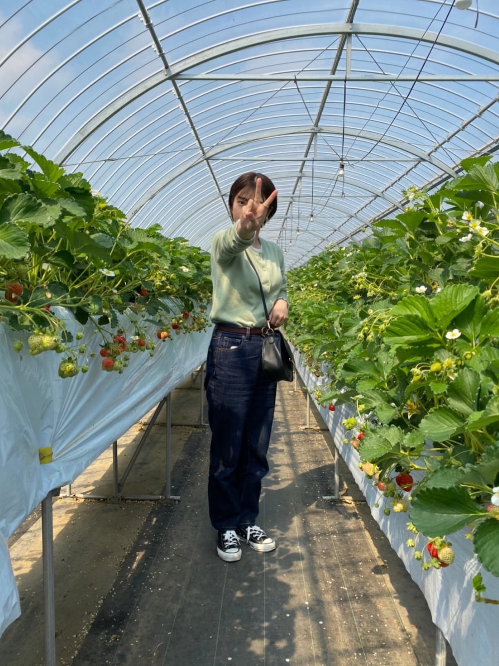 初投稿です🌼 淡路島に苺狩りに行った時のコーデです〜 今年もやっぱりピスタチオカラーがすきです🌿♡