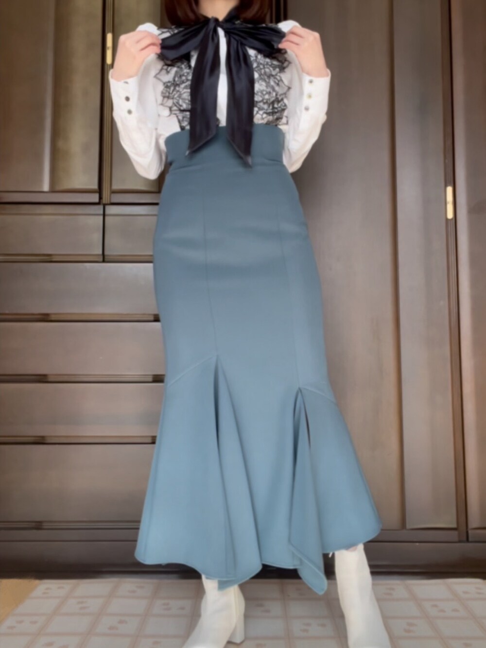 大人らしい服装にしました🧜🏻♀️𓈒𓂂𓏸 マーメイドスカートの色合いがとてもお気に入りです💚