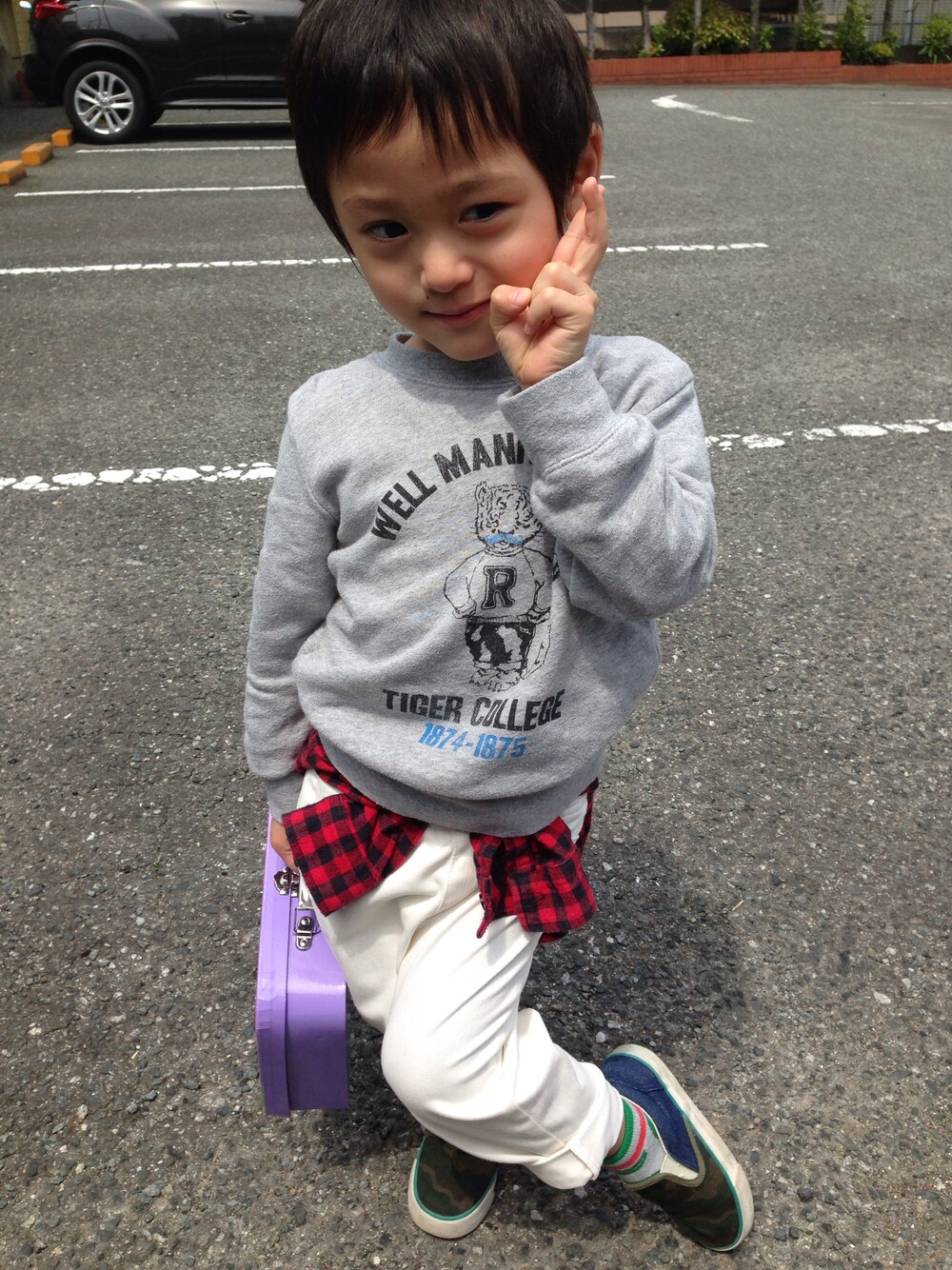 ランチへ♪ 暖かくてシャツ脱いだった!! トレーナー☆GLOBALWORK パンツ☆UNIQLO シャツ☆GLOBALWORK スリッポン☆GLOBALWORK 手提げバッグ☆フライングタイガー