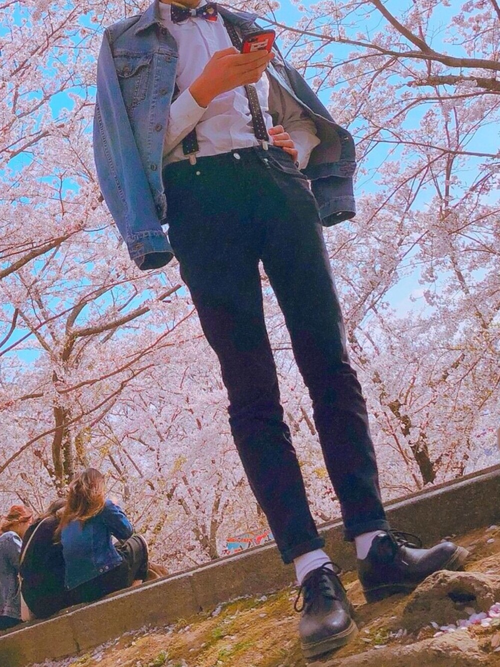 花見なんて何年振りかな?🌸 ここでもサスペンダー笑 次はもうちょっとらふかな?