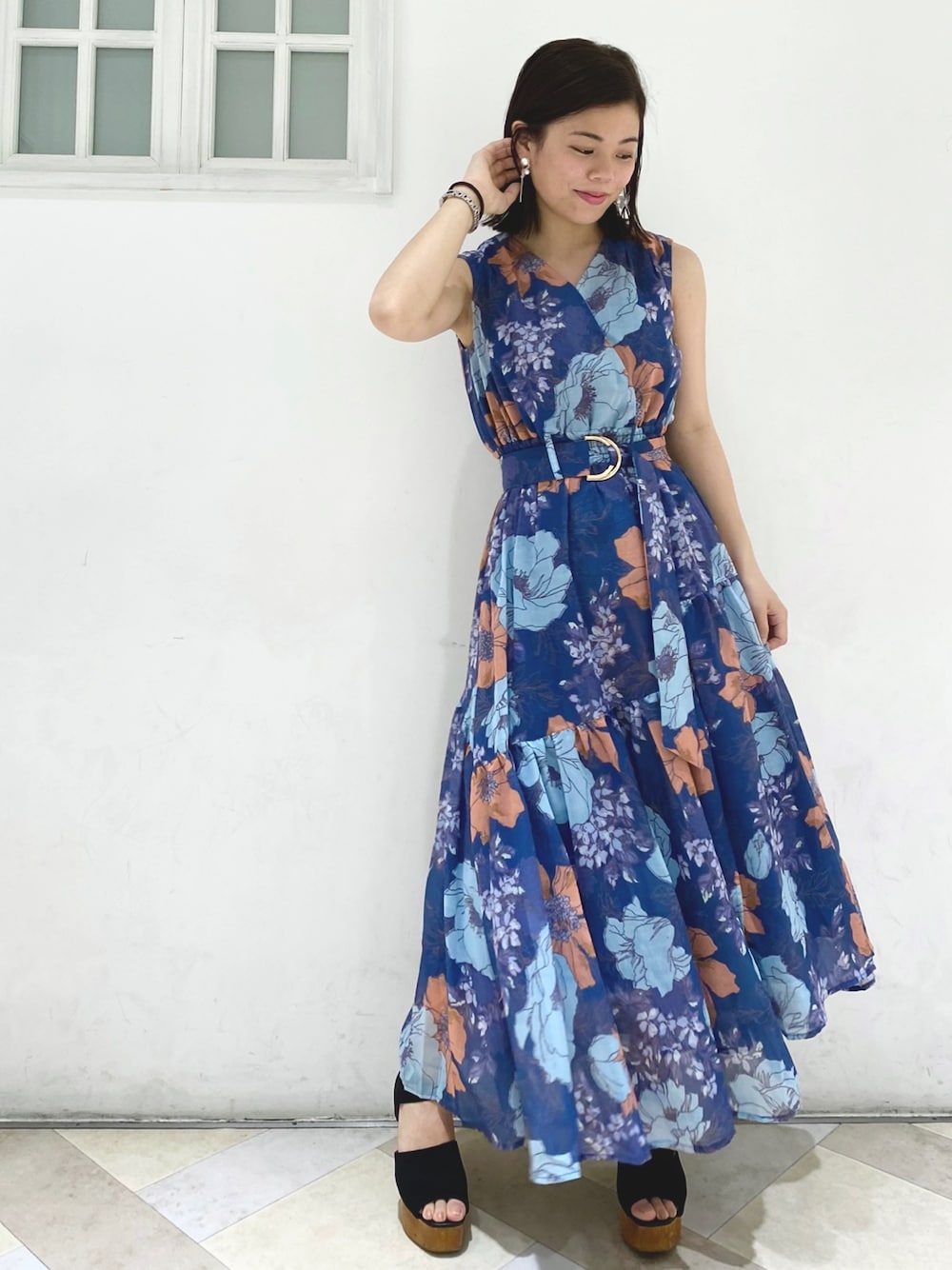 REDYAZELオリジナルプリントの花柄ワンピース♡♡ 裾部分もアシンメトリーでお洒落なデザインに✨ staff:153cm Sサイズ着用