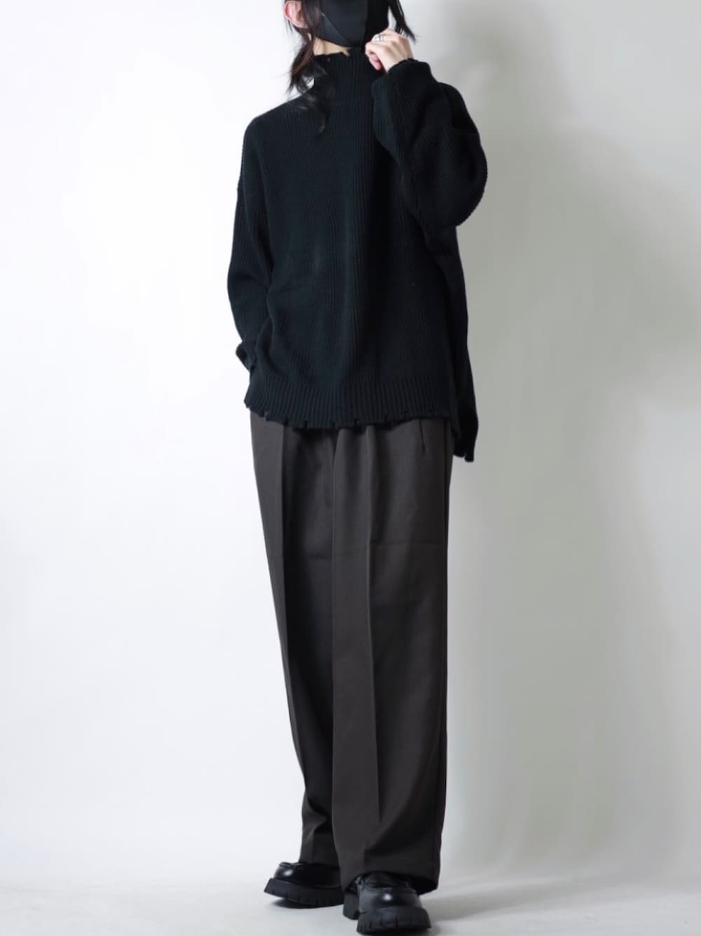 おはようございます!らいです😎 いつもいいね、フォルダインありがとうございます🙇♂️ 今回はモードな雰囲気のダメージタートルニットを着たコーデになります!🤩 普通のタートルニットも可愛いけど、ダメージ入ってるのも今年っぽくて可愛い🤣