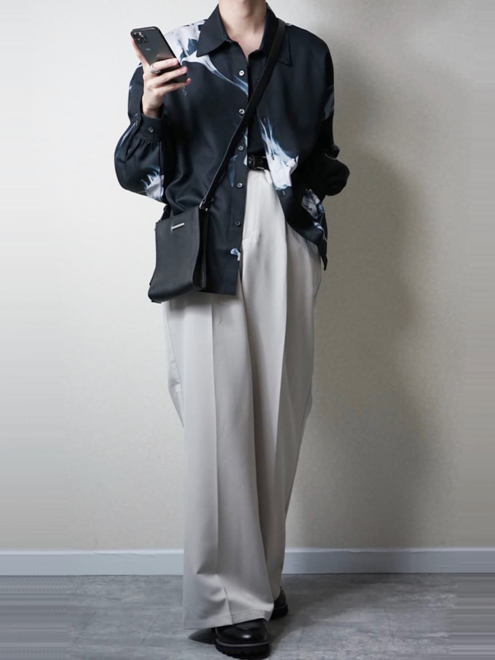 おはようございます😊 らいです😳 いつもいいね、フォルダインありがとうございます🚕 今回は柄シャツを使ったモノトーンコーデになります!