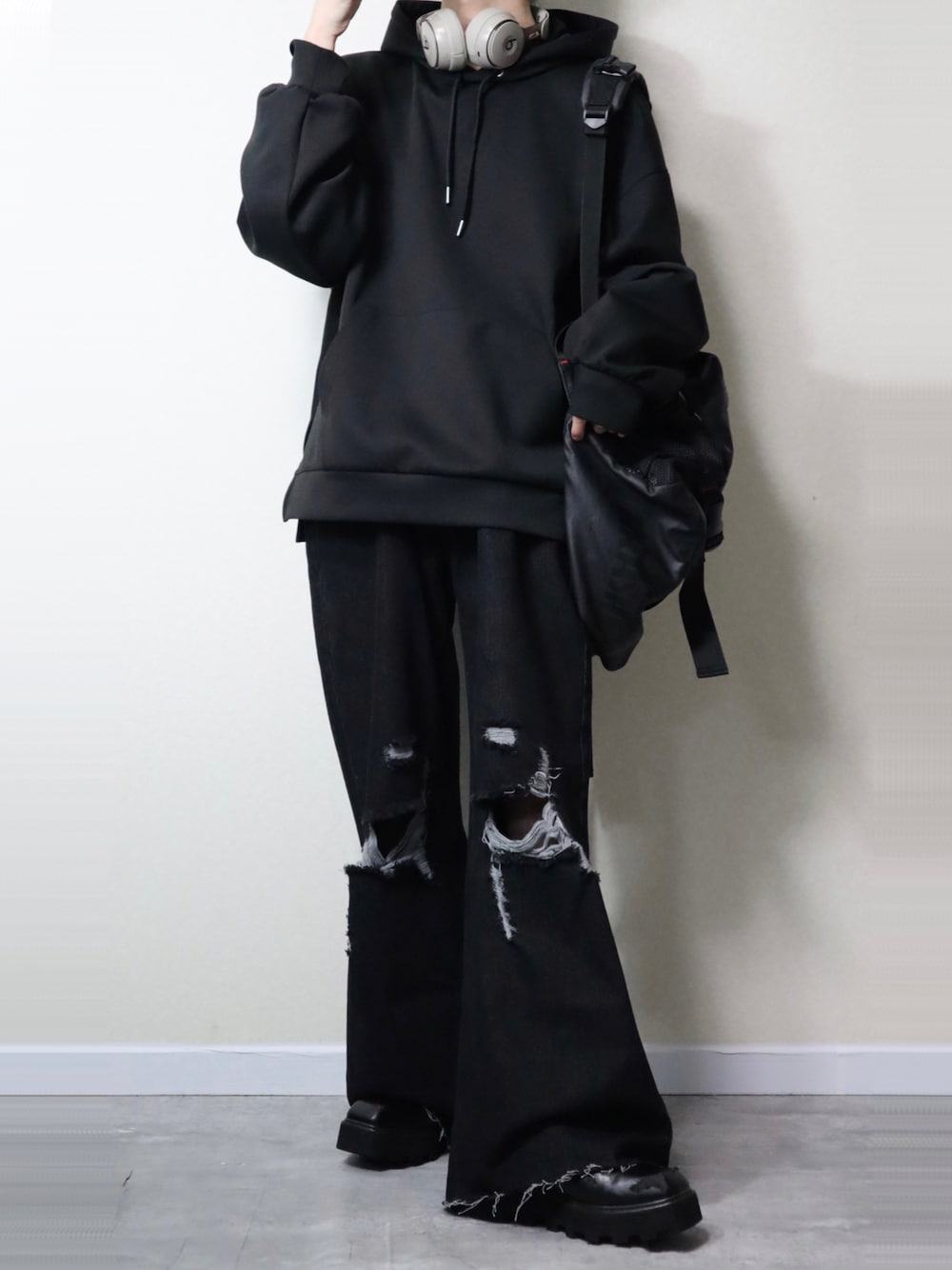 らいのパーカー「ルーズシルエットサイドスリットドレープヘビーウェイトポンチパーカー」を使ったコーディネート