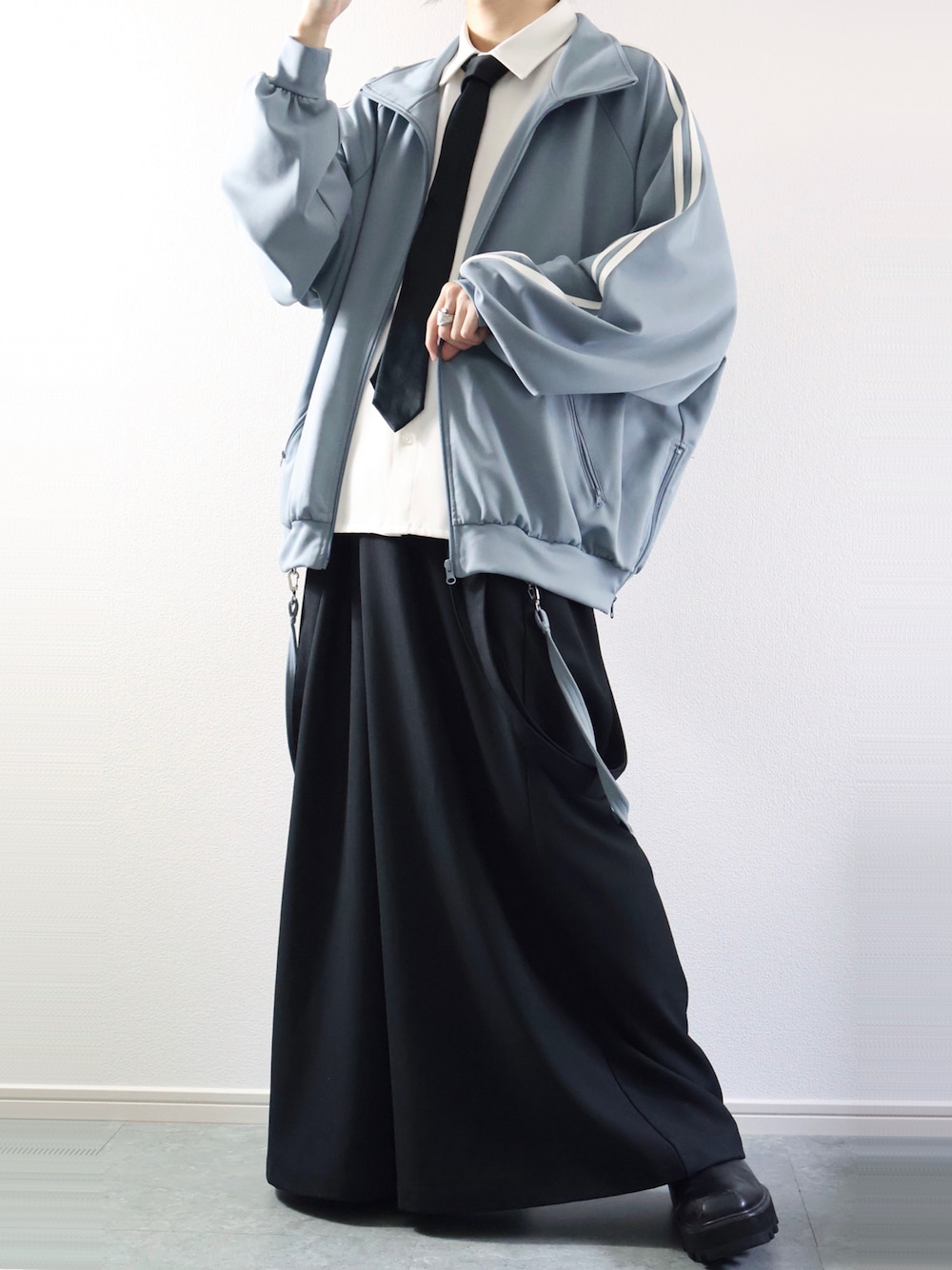 こんにちわ! いつもいいね、フォルダインありがとうございます! 今回はブルーのトラックジャケットを使ったコーデになります💙