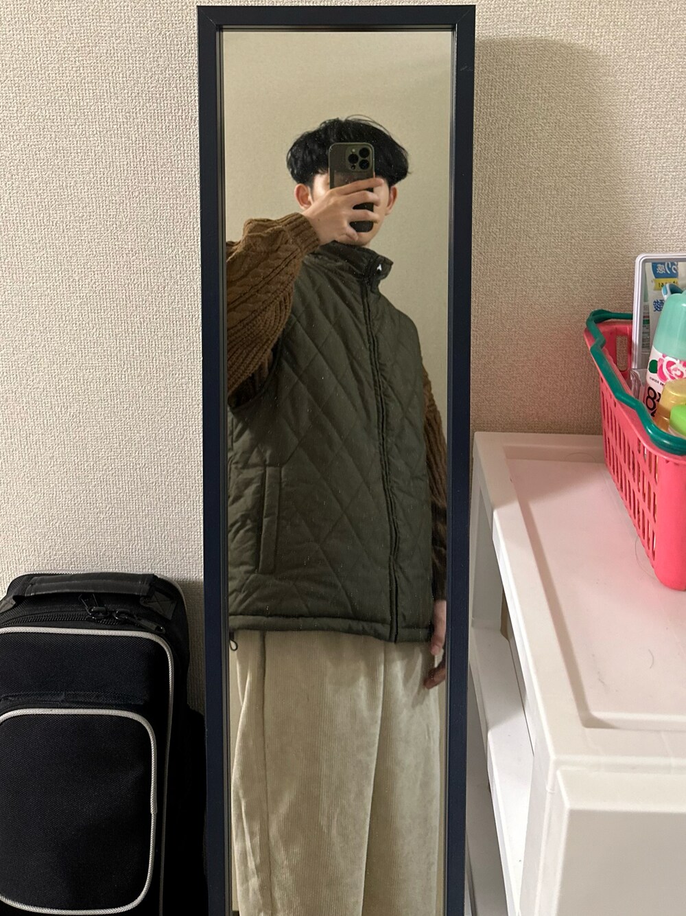 カーディガン:KHALIFA(L) フリースベスト:gym master(L) ワイドシルエットコーデュロイバルーンパンツ:neos(M)