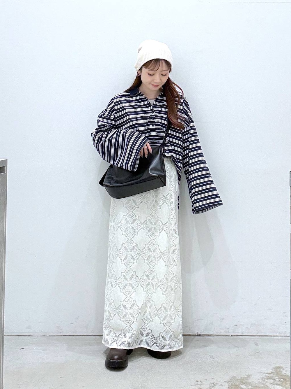 トップス▷ゆったりしたサイズ感です。 LEPSIMのマタニティウェアは産前産後、マタニティ以外の方も着用しやすいデザインです♪ スカート▷ウエストが総ゴム仕様なのではき心地楽ちんです。 裏地も長めなので安心感あります◎ Instagramも是非チェック、フォローお待ちしております🌼 ↓↓↓