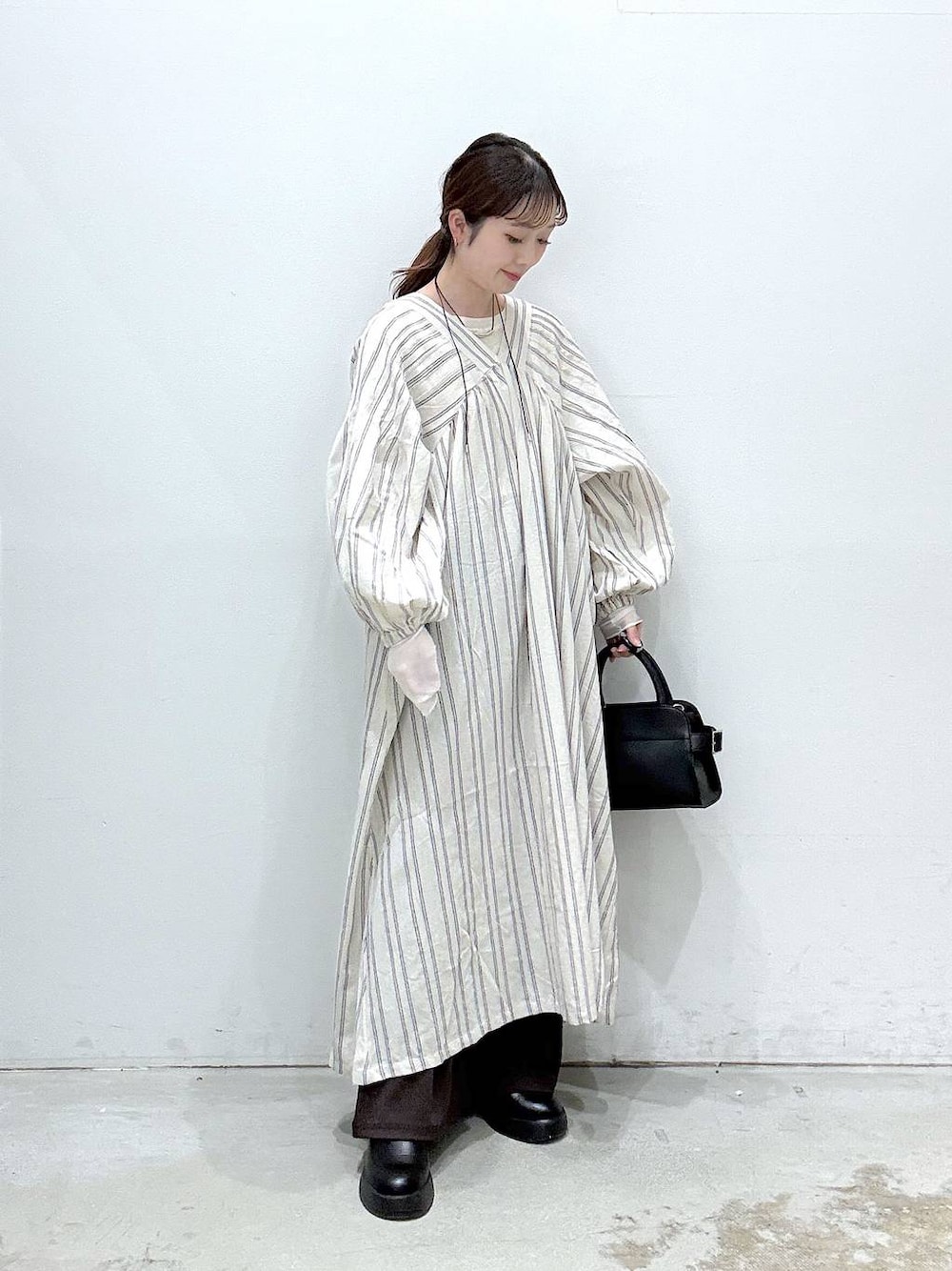 バックリボンのデザインに袖のボリューム感がかわいいワンピースは1枚着るだけで楽ちんオシャレ見え✨ ゆったりしたサイズ感なので着心地も良いです◎ 154cmの私は1枚で着ても、パンツをレイヤードしてもちょうど良い丈感でした。 Instagramはこちらから🌼.* ↓↓↓