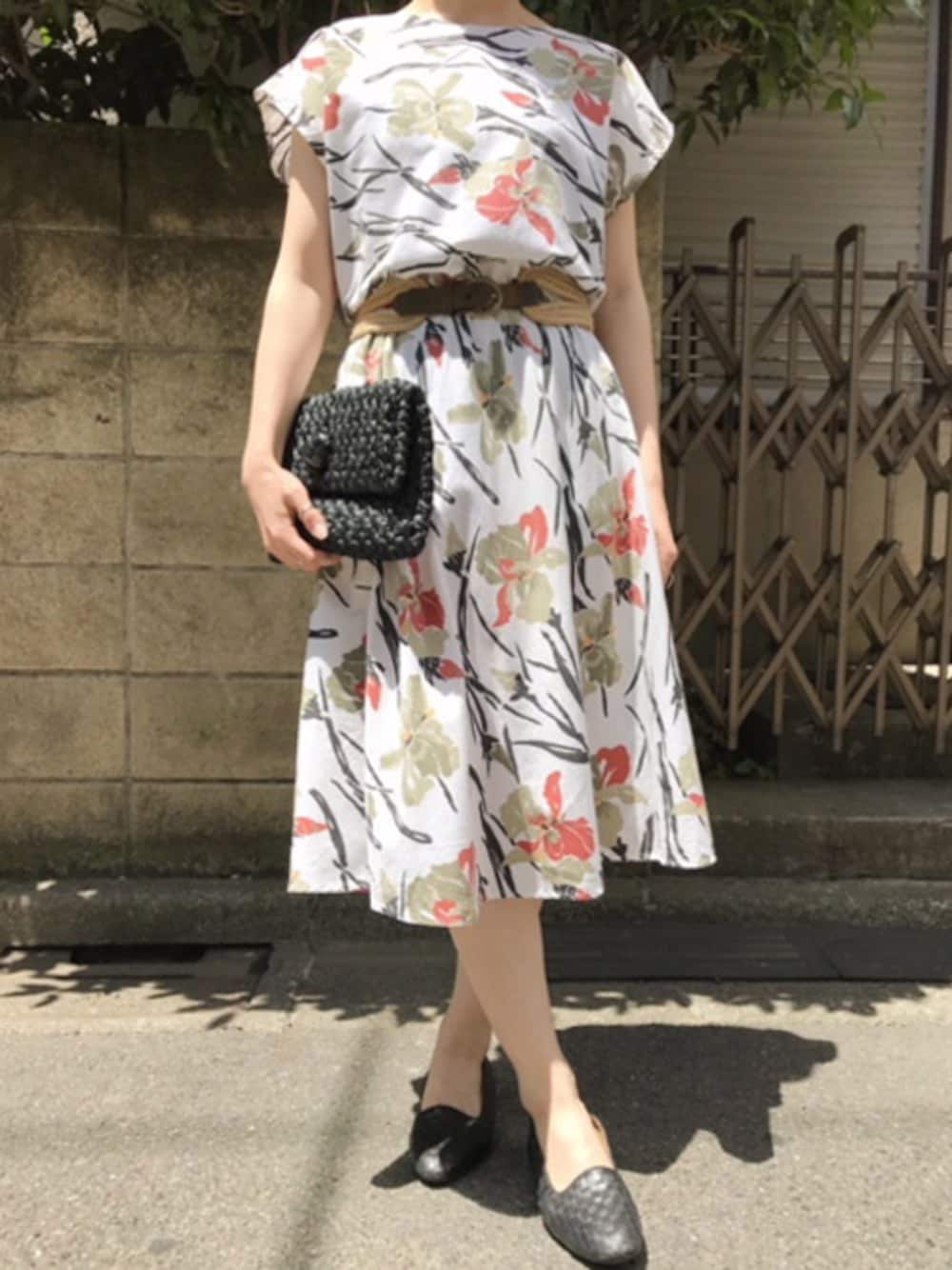古着屋RAINBOWのワンピース「古着 白 花柄 半袖 ロング丈 ワンピース レディース ヴィンテージ (古着屋RAINBOW 通販) (otu1608235)」を使ったコーディネート