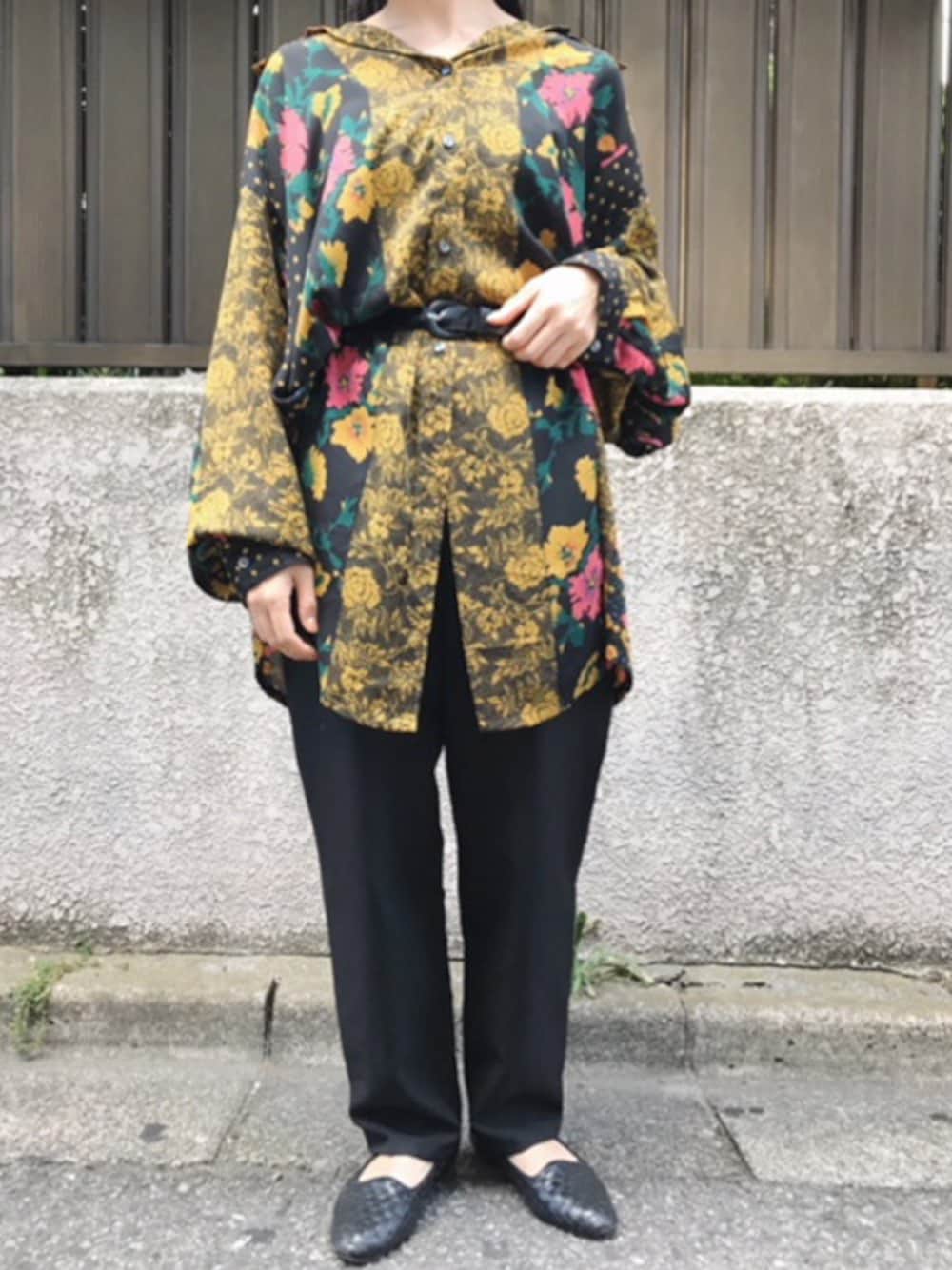 古着屋RAINBOWのシャツ/ブラウス「古着 黒 黄 ダーク 花柄 シフォン ロング丈 長袖 シャツ ブラウス レディース ヴィンテージ (古着屋RAINBOW 通販) (ttu1808038)」を使ったコーディネート