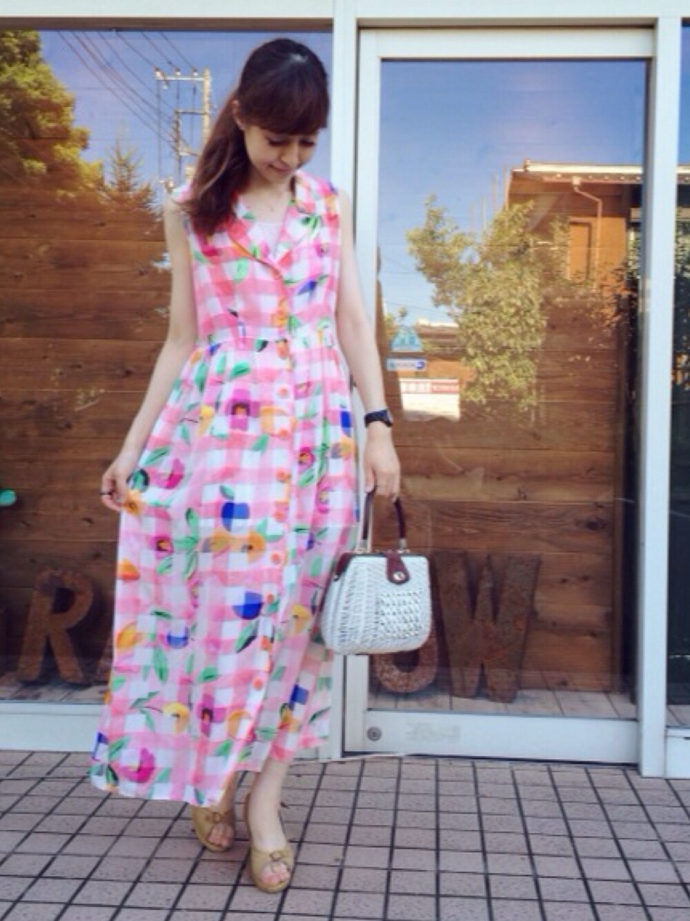 つくば店staffもんきちです🐩 🌺チェック柄にお花が可愛いワンピース🌺 ノースリーブなので夏のお出かけや旅先にいかがでしょうか?🌻 こちらのワンピースはRAINBOWつくば店またはオンラインショップでご覧いただけます♪【otu1506094】と検索してみてください💫