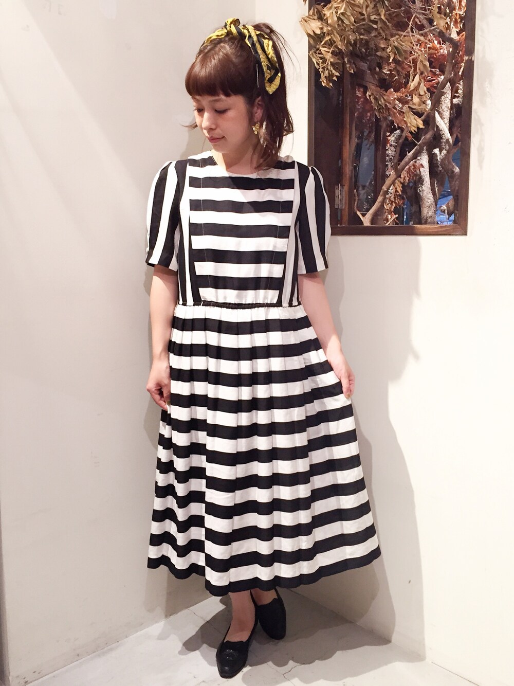 こんばんは 原宿店 staffユミです* 🌛ストライプ×ボーダーワンピース🌜 シューズもブラックで✨ コーディネートのポイントにヘアアクセとしても使えるスカーフもたくさん揃ってますよ! 是非見に来てくださいね♫ 当店オンラインショップで ワンピース《otu1506383》 シューズ《stu1506003》 と検索して頂ければ詳細がご覧頂けます🌼