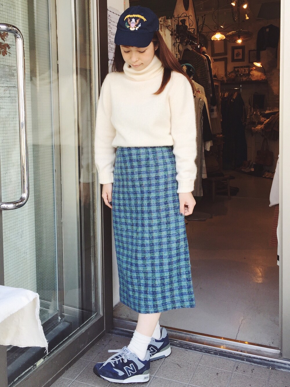 原宿店staffユミです🎈 白いモヘアニットにチェックスカートであったかコーデ🐏