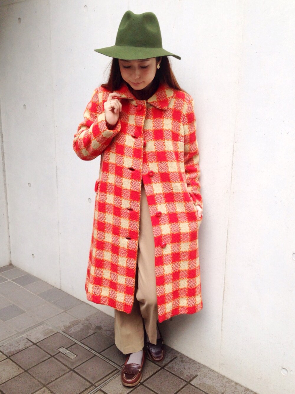 staff ユミです❄︎ あったかカラーのチェックコート。 ヴィンテージならではの色合い、デザイン。