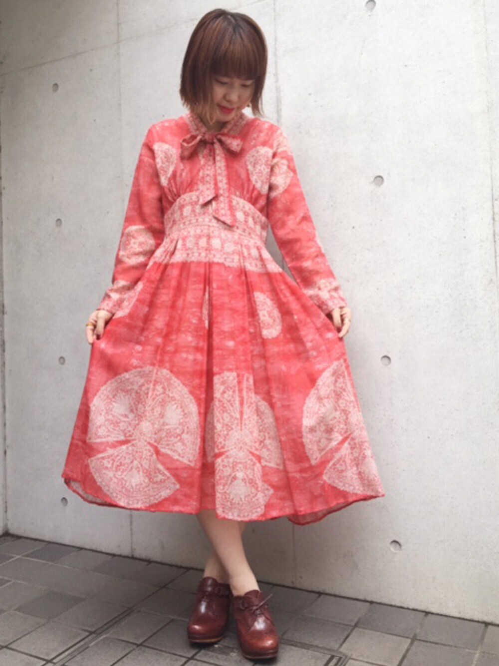 古着屋RAINBOWのワンピース「古着 赤 花柄 長袖 ロング丈 ワンピース レディース ヴィンテージ (古着屋RAINBOW) (otu1603142)」を使ったコーディネート