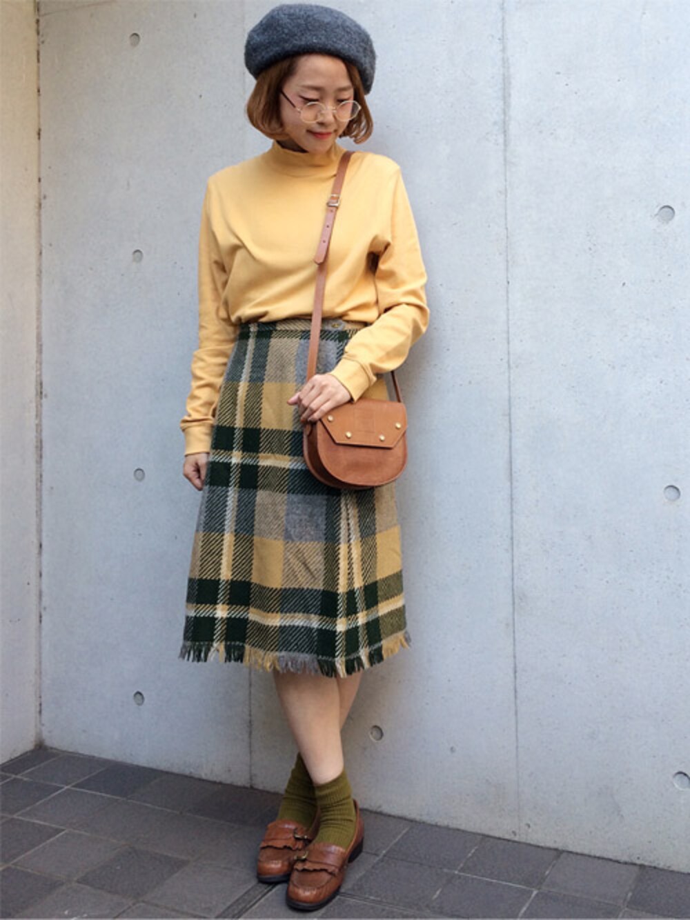 のフリンジが可愛いウールチェックスカートのコーデ* 珍しいお色味のチェック柄は一見難しそうですが、柄の中の色を使ってあげれば簡単にまとまります◎ 黄色はトップス、グレーはベレー、グリーンは靴下に… 小物は黄色味のあるキャメルで軽めにしてみました♪ ------------------------------ 東京・原宿・下北沢にあるレディース古着屋RAINBOWのWEARアカウントです。 当店のバイヤースタッフが直接アメリカへ足を運び、数万点の古着商品から厳選した、 高品質のレディースヴィンテージ古着を中心に、 トータルコーディネートが出来る可愛いアイテムを取り揃えております。 また、オンラインショップでは、常時およそ1万点のレディースインポート古着を取り扱っており、 日本最大級のレディースヴィンテージ・レトロ古着の通販サイトも運営しております。 ◇OnlineShopへはこちらから ▶︎http://www.tsukuba-rainbow.com/ ”古着 RAINBOW”でも検索出来ますので是非チェックしてみてくださいね!