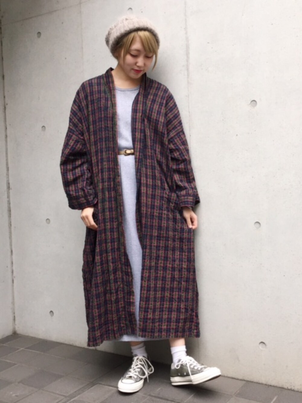 ポケットが可愛いサーマルワンピースにチェック柄ガウンを羽織ったコーディネート♪ サーマルワンピースはストンとした形なのでベルトでシルエットにメリハリを* チェック柄×ニット帽×スニーカーでとことんカジュアルなゆるっとスタイル^^ ------------------------------ 東京・原宿・下北沢にあるレディース古着屋RAINBOWのWEARアカウントです。 当店のバイヤースタッフが直接アメリカへ足を運び、数万点の古着商品から厳選した、 高品質のレディースヴィンテージ古着を中心に、 トータルコーディネートが出来る可愛いアイテムを取り揃えております。 また、オンラインショップでは、常時およそ1万点のレディースインポート古着を取り扱っており、 日本最大級のレディースヴィンテージ・レトロ古着の通販サイトも運営しております。 ◇OnlineShopへはこちらから ▶︎http://www.tsukuba-rainbow.com/ ”古着 RAINBOW”でも検索出来ますので是非チェックしてみてくださいね!