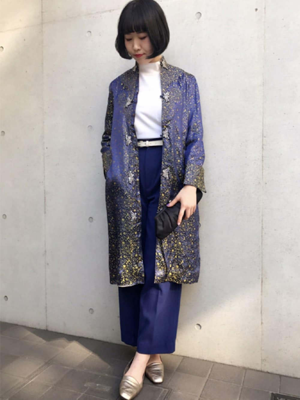 パープルとブルーを混ぜたような絶妙カラーの、サテンチャイナガウンを主役にした大人コーデ* 細かなゴールド刺繍が華やかに彩ってくれます^^ インナーはシンプルなタートルネックと、ネイビーブルーのタックパンツを合わせてハンサムチックに仕上げました◎ ------------------------------ 東京・原宿・下北沢にあるレディース古着屋RAINBOWのWEARアカウントです。 当店のバイヤースタッフが直接アメリカへ足を運び、数万点の古着商品から厳選した、 高品質のレディースヴィンテージ古着を中心に、 トータルコーディネートが出来る可愛いアイテムを取り揃えております。 また、オンラインショップでは、常時およそ1万点のレディースインポート古着を取り扱っており、 日本最大級のレディースヴィンテージ・レトロ古着の通販サイトも運営しております。 ◇OnlineShopへはこちらから ▶︎http://www.tsukuba-rainbow.com/ ”古着 RAINBOW”でも検索出来ますので是非チェックしてみてくださいね!