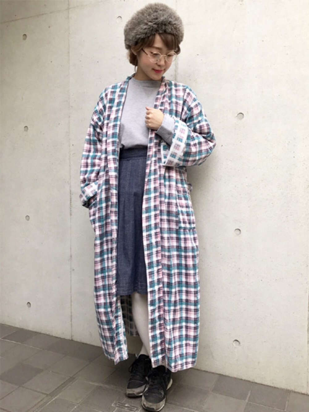 古着屋RAINBOWのその他アウター「古着 緑 チェック柄 ガウン 前開き 長袖 ライト アウター レディース ヴィンテージ (古着屋RAINBOW) (ttu1701086)」を使ったコーディネート