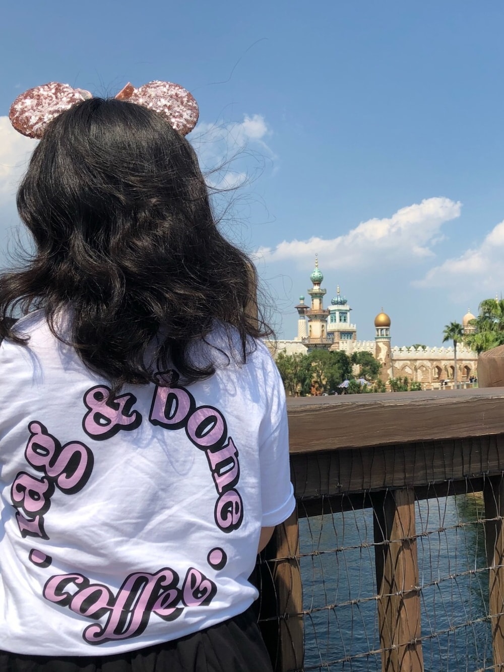 髪の毛クリンクリン💈 念願のrag & bone coffe さん のTシャツを着て 8月にシーに行った時の1枚☕️💖