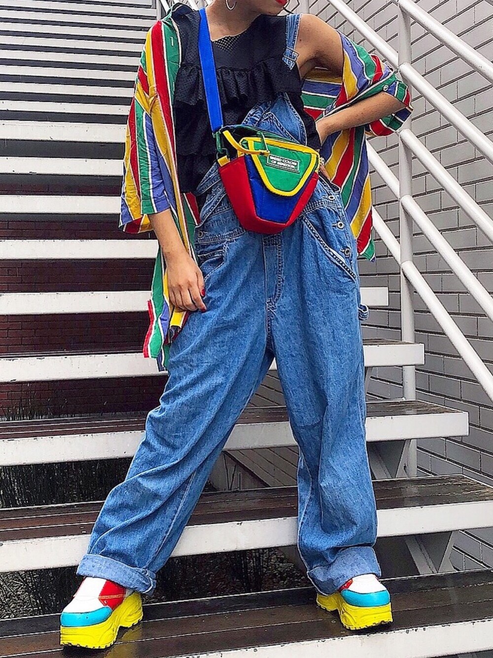 靴以外ぜんぶ古着です🤣🌈❤️ デニムはほんとなんでも合わせやすい😌✨✨✨