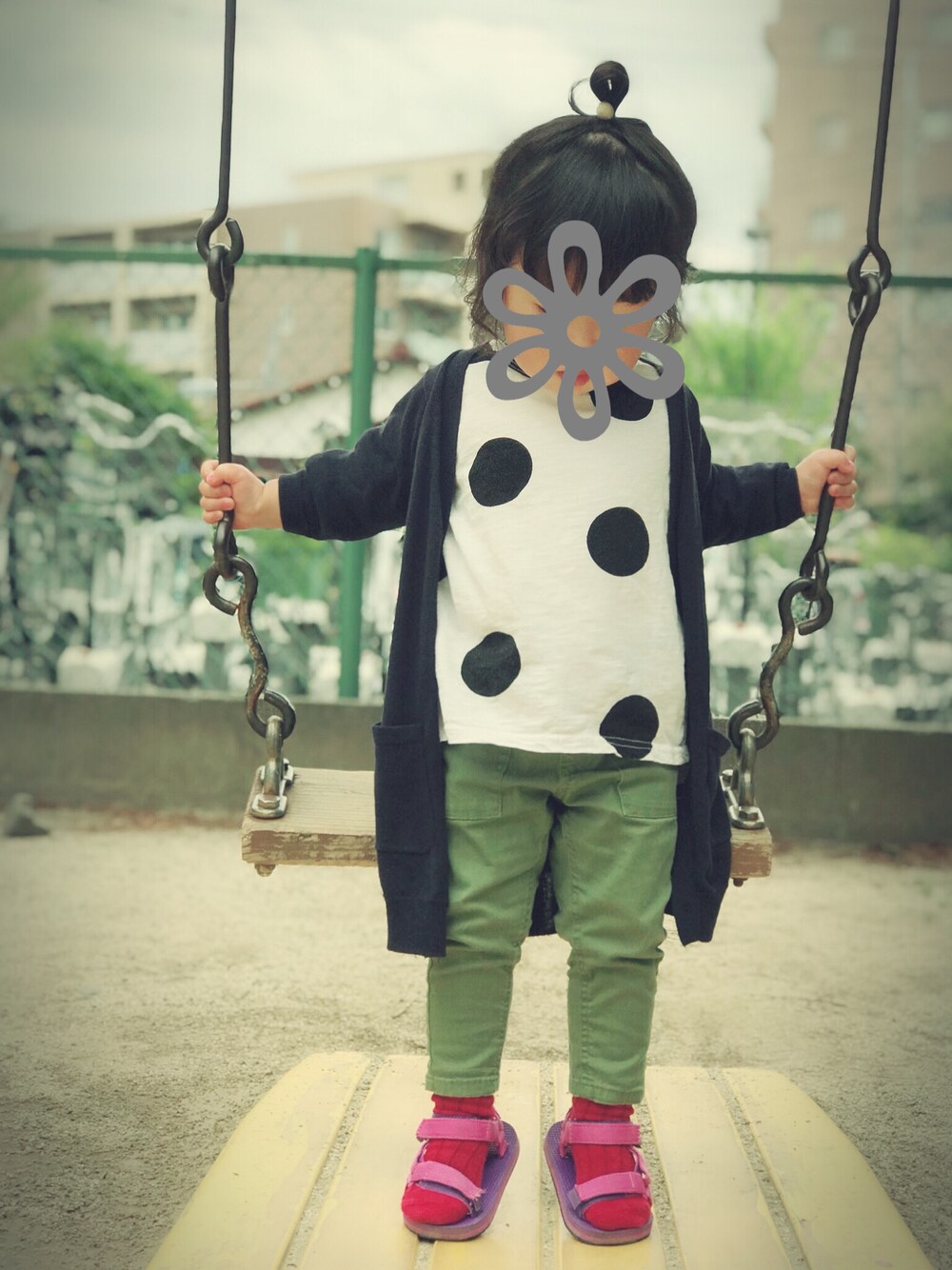 前回の保育園コーデにロングカーディガンの着回し✨ どうしてもサンダルがいいと言うので足元がちらかってます💦
