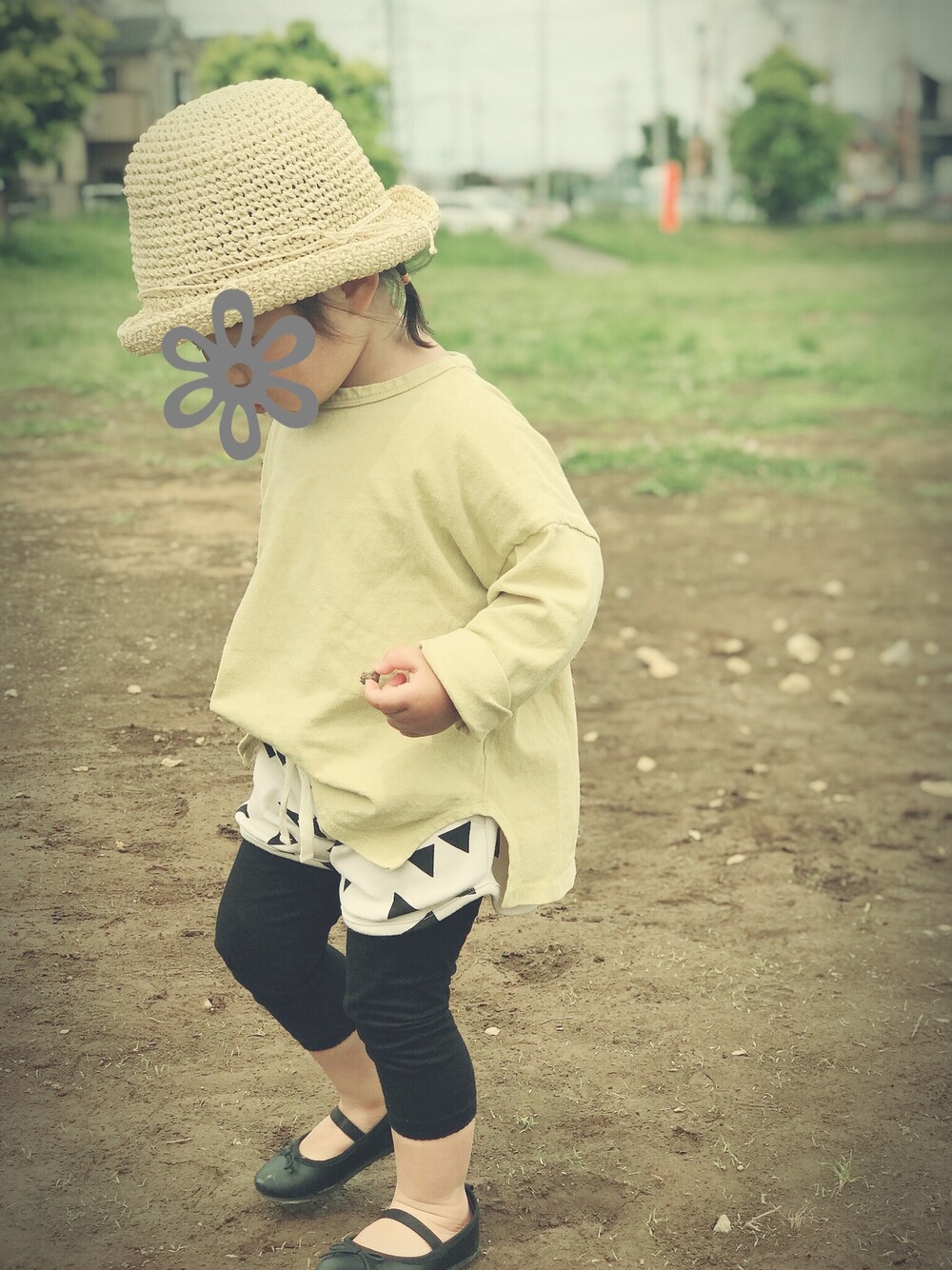 ショートパンツはサンカク模様が可愛いすぎて、悩んだあげく購入 覚悟はしていたけど土の上に座り込んでガッツリ遊んでくれました💦 ウタマロせっけんさまお願いします