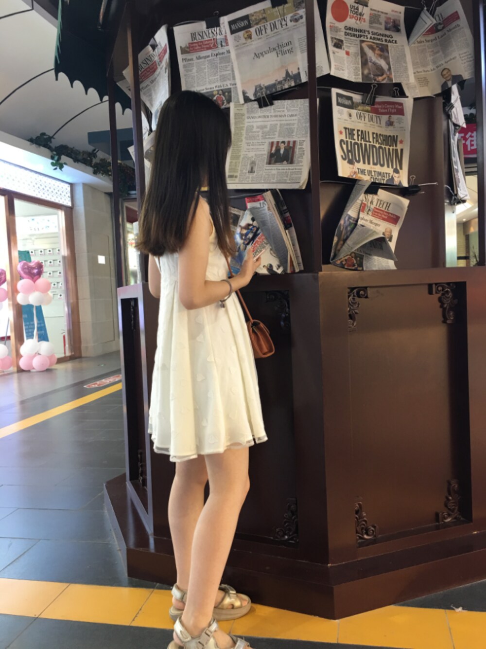 ホワイト系のワンピース、シルバー系のサンダルを着用したレディースの夏コーディネートの1枚目の写真