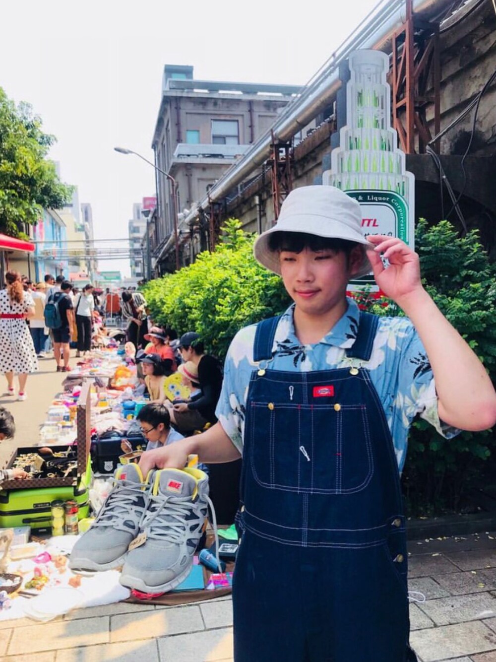 ブルー系のサロペット/オーバーオールを着用したメンズの夏コーディネートの1枚目の写真
