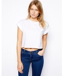 Rainie。カツのTシャツ/カットソー「ASOS Cropped Boyfriend T-Shirt with Roll Sleeve」を使ったコーディネート