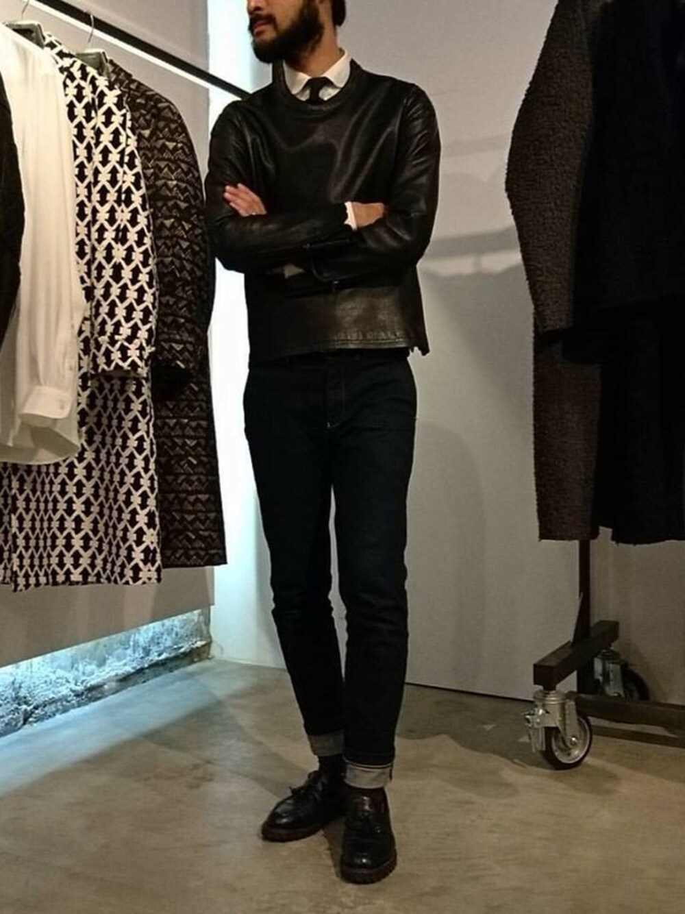 RAINMAKER 17AW スタイリング CREW NECK LEATHER SHIRTS DEMIM TROUSERS(INDIGO) KILT TASSELED LOAFER(BLACK) 合わせは至ってシンプル。 クルーネックにタイドアップ。 レザーってだけで洒落てます。 趣味みたいなレザースタイリング連発ですいません。。 【住所】 〒604ー8165 京都府京都市中京区烏帽子屋町502 【最寄り駅】 烏丸御池駅から徒歩5分 阪急烏丸駅から徒歩10分 【TEL】 075-708-2280 【mail】 contact@rainmaker-kyoto.com 【営業時間】 13:00~21:00 / 水曜定休 [RAINMAKER-Instagram Account】RAINMAKER_KYOTO [濱ノ上-Instagram Account】teppeihamanoue [RAINMAKER-FB】https://www.facebook.com/rainmakerkyoto [濱ノ上-FB】https://www.facebook.com/teppei.hamanoue [BLOG】 http://rainmaker-kyoto.blogspot.jp/ [オンラインショップ】 http://rainmaker-kyoto.shop-pro.jp/