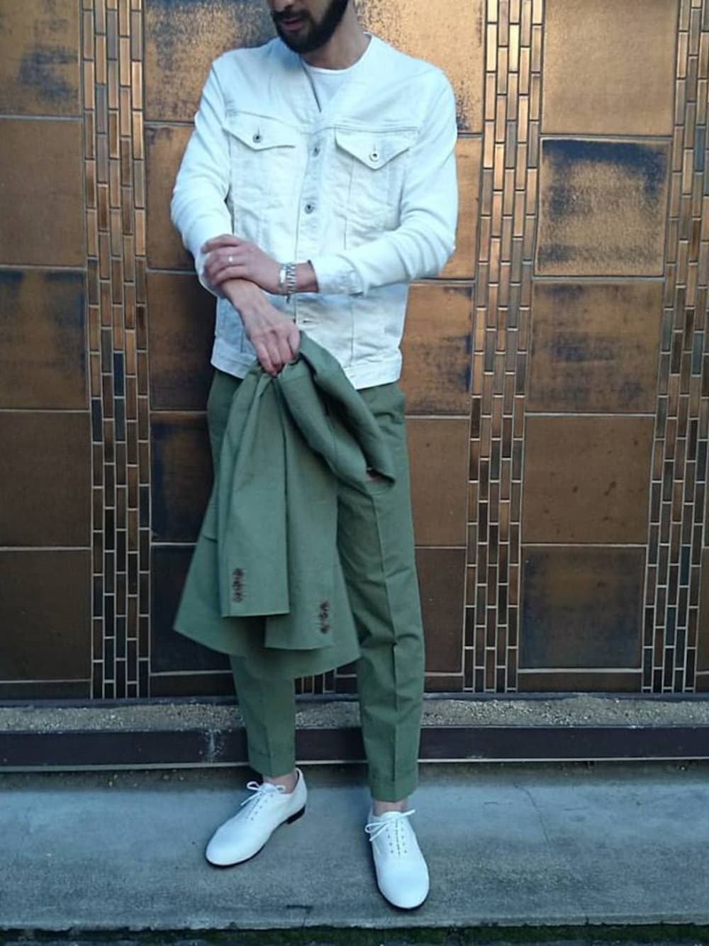 RAINMAKER KYOTO 16SS SETUP SINGLE BREASTED JACKET(KHAKI) KNIT SLEEVE DENIM JACKET(WHITE) ANKLE TROUSERS(KHAKI) CANVAS OXFORD SHOES(WHITE) コットンリネンの表情が素晴らしいRAINMAKER16SSセットアップ。 若草色のような優しいカーキ色に白のデニム、白のシューズが良く馴染みます。 カーキにホワイトってやっぱり良いですね。 宜しければ参考までに。 又、オンラインショップでもお買い求め頂けます。 気になるアイテムがございましたらお気軽にお問い合わせください。 [RAINMAKER-Instagram Account】RAINMAKER_KYOTO [濱ノ上-Instagram Account】teppeihamanoue [RAINMAKER-FB】https://www.facebook.com/rainmakerkyoto [濱ノ上-FB】https://www.facebook.com/teppei.hamanoue [BLOG】 http://rainmaker-kyoto.blogspot.jp/ [オンラインショップ】 http://rainmaker-kyoto.shop-pro.jp/ [住所】 〒604ー8165 京都府京都市中京区烏帽子屋町502 【最寄り駅】 烏丸御池駅から徒歩5分 阪急烏丸駅から徒歩10分 【TEL】 075-708-2280 【mail】 contact@rainmaker-kyoto.com 【営業時間】 13:00~21:00 / 水曜定休