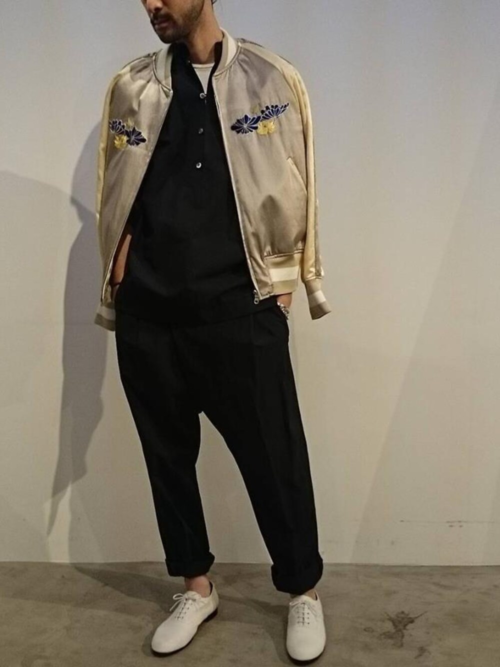 RAINMAKER KYOTO 16SS STYLING KYOTO SOUVENIR JACKET(GRAY) TUNIC SHIRTS(BLACK) WRAP PANTS(BLACK) CANVAS OXFORD SHOES(WHITE) RAINMAKERスカジャンに アジアンテイストのシャツ、シャツと同素材のフロントのデザインが面白いWRAP PANTSでセットアップスタイル。 スカジャンを少し悪い雰囲気で。 KYOTO SOUVENIR JACKET 天台宗の京都五箇室門跡の一つに 数えられる青蓮院門跡。 襖絵に描かれた木村英輝先生の蓮の絵画を刺繍で表現しました。 宜しければ参考までに。 又、オンラインショップでもお買い求め頂けます。 気になるアイテムがございましたらお気軽にお問い合わせください。 [RAINMAKER-Instagram Account】RAINMAKER_KYOTO [濱ノ上-Instagram Account】teppeihamanoue [RAINMAKER-FB】https://www.facebook.com/rainmakerkyoto [濱ノ上-FB】https://www.facebook.com/teppei.hamanoue [BLOG】 http://rainmaker-kyoto.blogspot.jp/ [オンラインショップ】 http://rainmaker-kyoto.shop-pro.jp/ [住所】 〒604ー8165 京都府京都市中京区烏帽子屋町502 【最寄り駅】 烏丸御池駅から徒歩5分 阪急烏丸駅から徒歩10分 【TEL】 075-708-2280 【mail】 contact@rainmaker-kyoto.com 【営業時間】 13:00~21:00 / 水曜定休