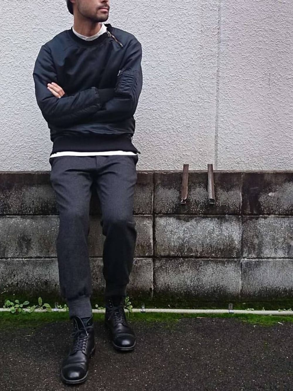 濱ノ上のミリタリージャケット「RAINMAKER 16AW-PULLOVER FLIGHT JACKET(BLACK)」を使ったコーディネート