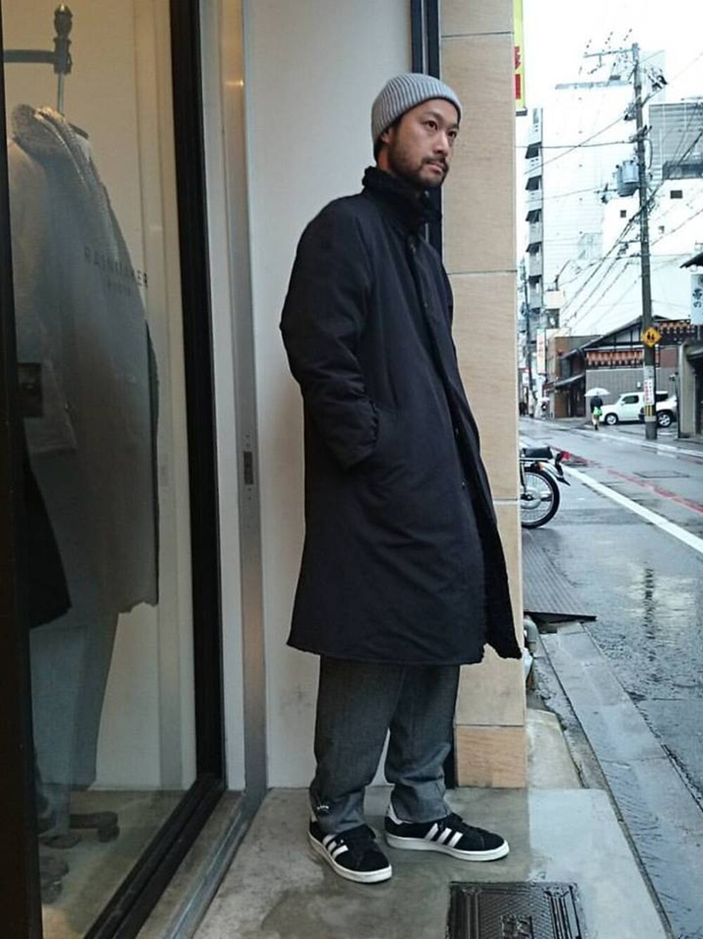 濱ノ上のステンカラーコート「RAINMAKER-16AW BAL COLLAR COAT(BLACK)」を使ったコーディネート