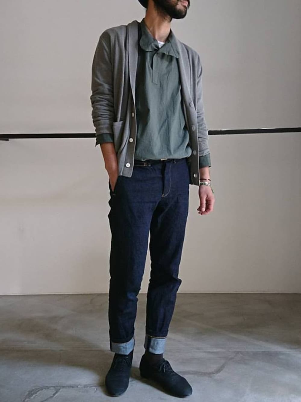 濱ノ上のカーディガン/ボレロ「RAINMAKER 17SS-SHAWL COLLAR CARDIGAN( GRAY)」を使ったコーディネート