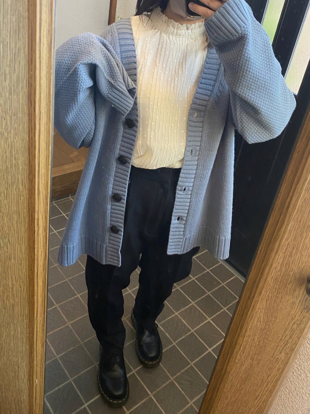 ラフすぎやしないか??? この前のくすみブルーのカーディガンに袖をつけたのだ