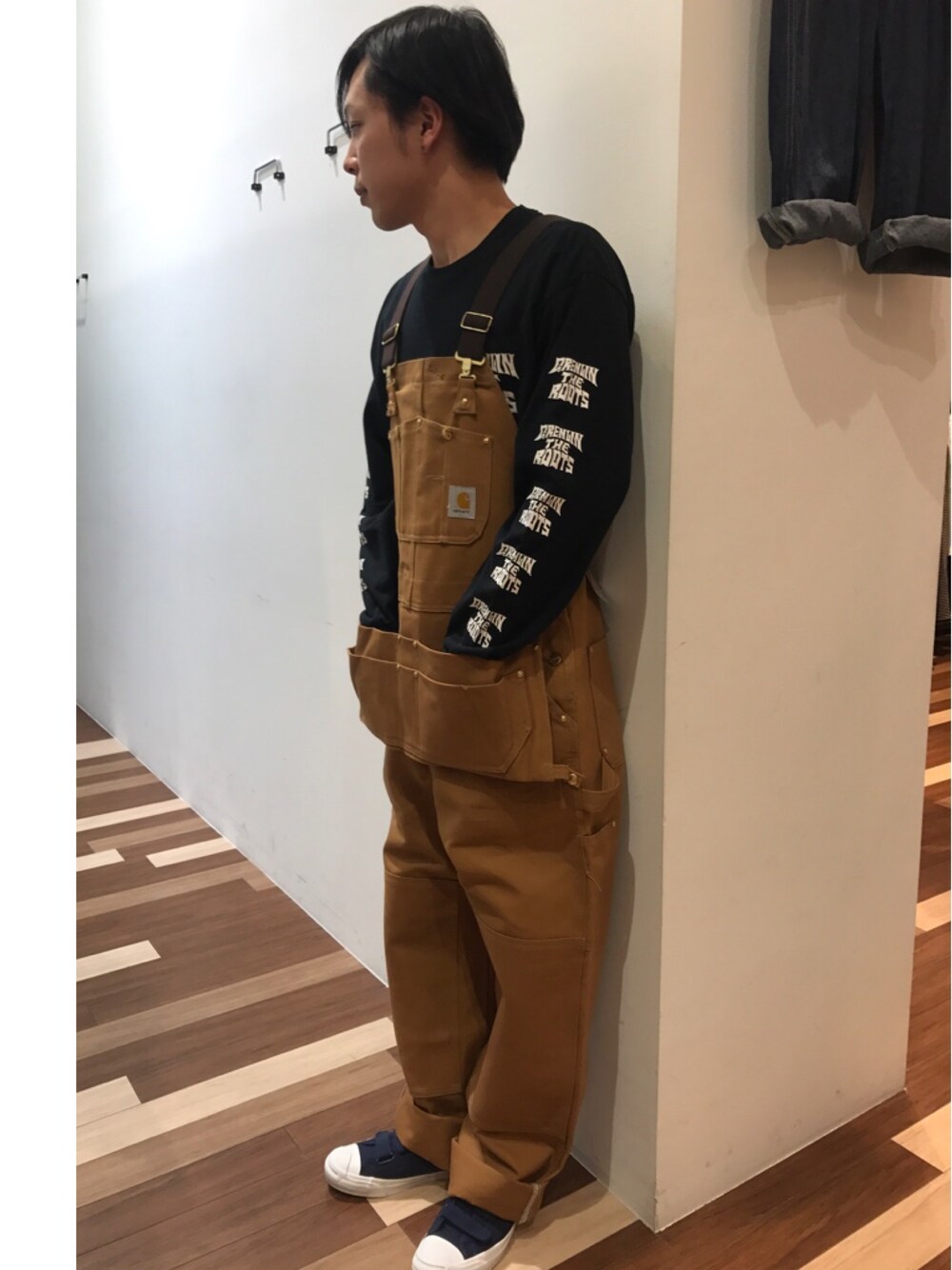 最近のハマりもの。 オーバーオール。 サイドプリントのロンTを加え ストリートテイストにしました。 春にはこんな感じで。