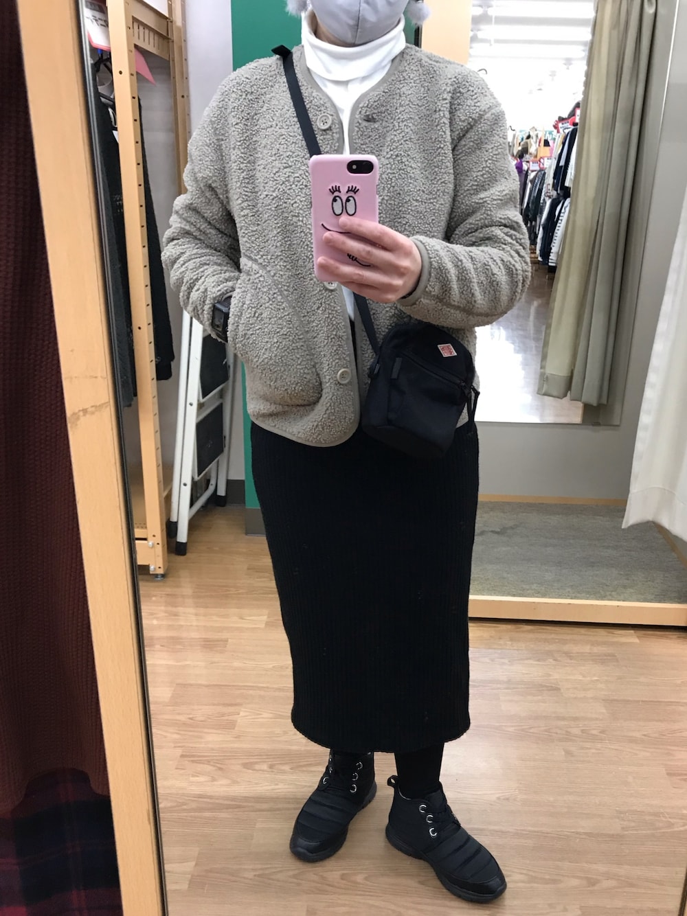 いつかのコーデ☆ 20210111 タイトスカート久しぶり。 ソフトタッチのタートル、暖かくて着心地がいい。 ダントンのショルダーがすごく使いやすくて、最低限の物を入れて出かけるのに重宝してる♪