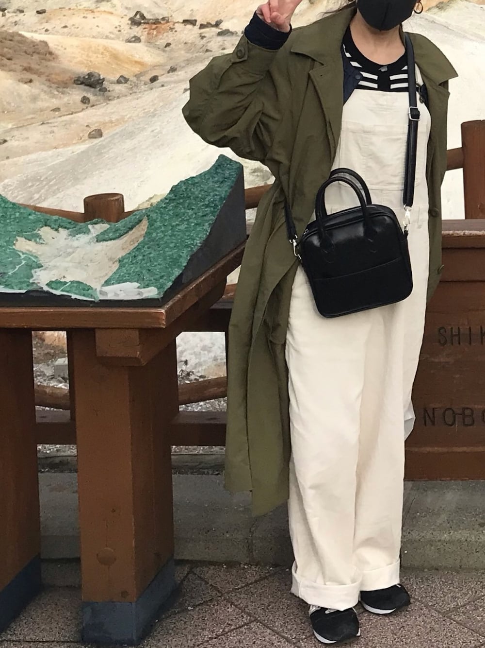 久しぶりに家族で温泉❗️ コーデュロイのオーバーオール、ホワイトだからまだ着れたけど、そろそろコーデュロイおしまいだなぁ。 ステンカラーコートで春を意識してしたけど、少し肌寒いから中にインナーダウン仕込みました!