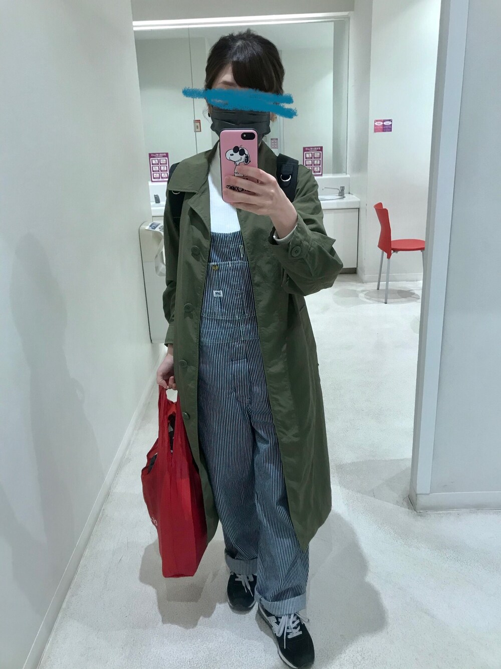 Yと2人で、おでかけ☆ ヒッコリーオーバーオール久しぶり! カーキのステンカラーコートとの相性抜群♪ ニューバランスやっぱり歩きやすい☆